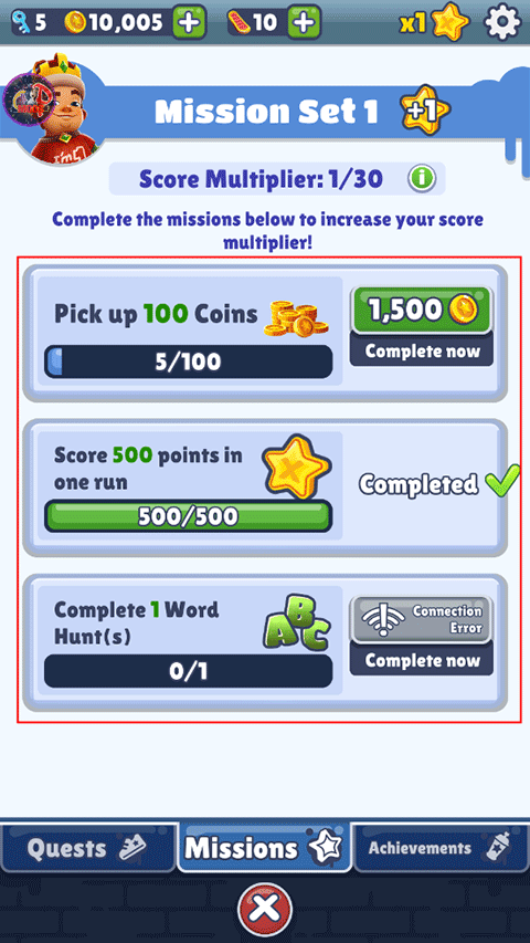除了惊险刺激的跑酷动作和金币收集外,地铁跑酷还添加了有趣的任务系统,每天只需完成每日挑战就可获得十分丰厚的奖励,游戏中任务类型分为几大类,接下来跟随小编逐一了解吧。