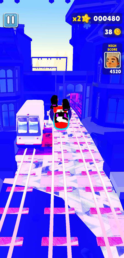 地铁跑酷CEnk7公益3.0版是经典地铁跑酷游戏玩法的魔改版本,游戏的背景采用了粉蓝色调进行设计,和原版相比不论是画面还是角色等都有了很大的不同。最基本的核心玩法大致是一样的,但是游戏场景也是变得截然不同了,而且顺滑流畅的操作手感比普通版更好。此版本的玩家将在城市中进行跑酷,并在跑酷途中去收集金币,并及时躲避来往的地铁、汽车等障碍物,游戏中的这些障碍物的刻画与配色也非常到位,给人一种流畅自然的游戏体验。玩家新手们加入游戏还能够领取到很多的礼包,其中有很多的道具时装任玩家选择。