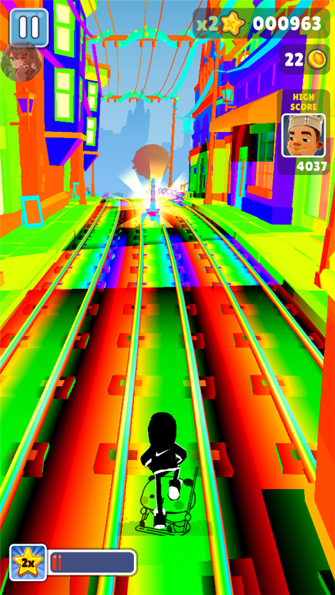 获得双倍得分(2X Multiplier)后,在道具有效时间内,每收集一个金币即可获得两倍于原先倍数的得分。