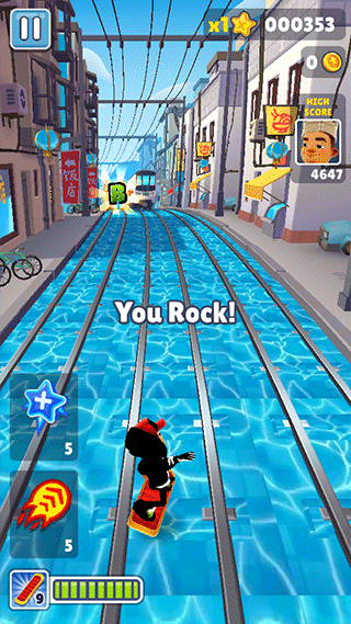 游戏操作起来是非常的简单,只需要通过左右滑动控制Jake杰克移动,上下控制人物跳跃下滑,并且在地铁跑酷游戏中拥有海量的道具,而这些道具能够帮助玩家更好的获得分数,并且这些道具都可以进行升级,升级是能够提升它的时效性,让你在做任务的时候能够更加的轻松。