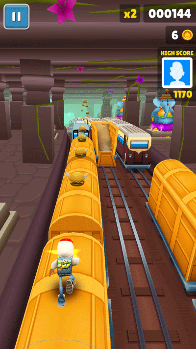 没有跳跃鞋从轨道上火车,在有路障的情况下,掌握好跳起的落点,在路障的上方下拉,使角色落在路障上可以再次跳起,然后就可以跳上火车顶了,相信大家都遇到过有个收集物品在火车上,却拿不到而错过的尴尬,掌握了这个技巧,问题迎刃而解。