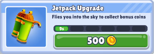 6、图中还有磁铁、飞行背包、双倍得分、运动鞋等各种各种的道具可以获取使用,这次的是磁铁,在一定时间内会自动吸收所有的金币,