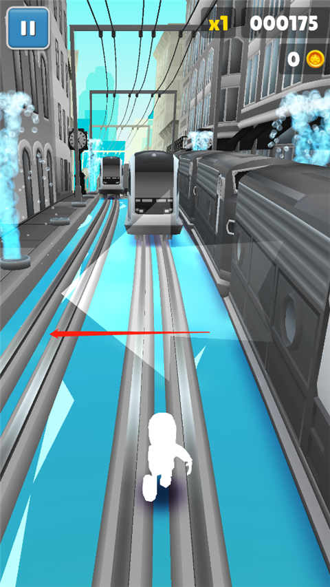 4、前方遇到挡路的火车,向左或者向右滑动,换到别的车道,利用好距离躲避火车,