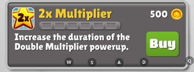 获得双倍得分(2X Multiplier)后,在道具有效时间内,每收集一个金币即可获得两倍于原先倍数的得分。