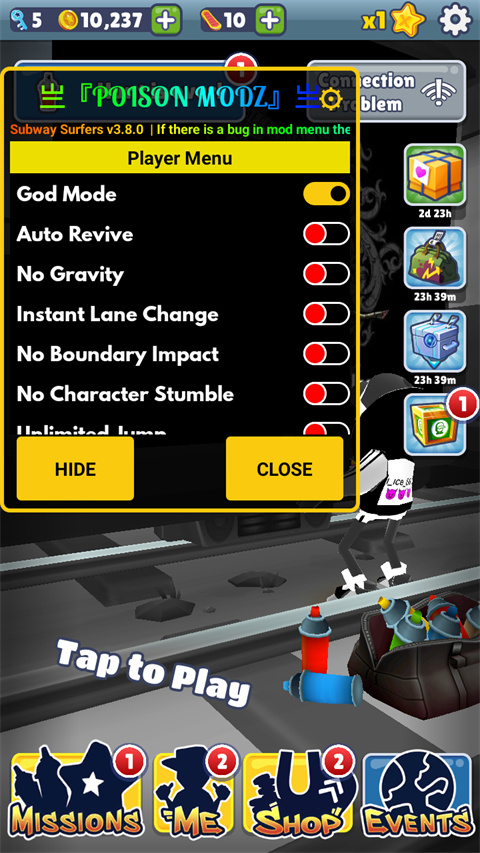 此外,地铁跑酷难言黑白版本还为广大的游戏玩家们提供了内置菜单功能,通过这个菜单能够实现上帝视角、海量金币以及海量道具等等功能,让玩家们的游戏及体验感会更好,对此有兴趣的小伙伴们可以来免费下载体验。