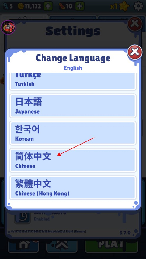 地铁跑酷锅铲QAQ定制版怎么设置中文