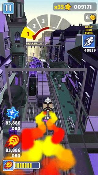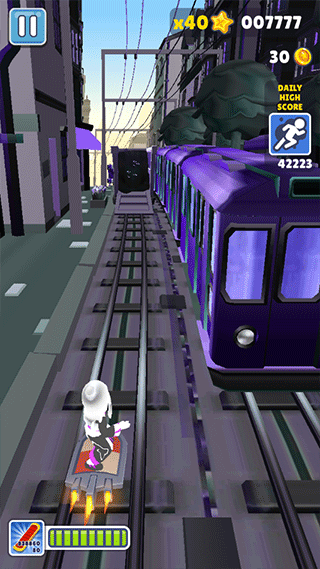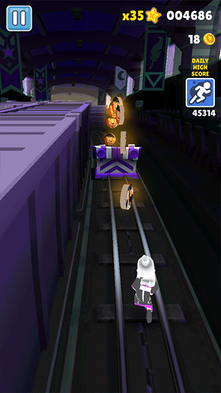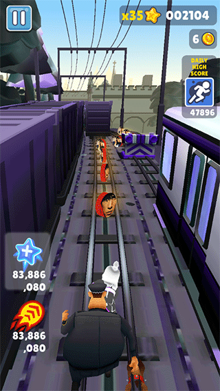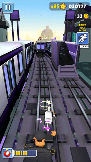 另外,地铁跑酷游戏还有多样化的游戏道具供你使用,最能吸引玩家的便是道具中的磁铁,这个磁铁可以帮助玩家自动吸引硬币和宝石,让玩家顺利获得更高的得分,还有加速器,可以使玩家短时间内移速瞬间提高,从而逃脱警察的追捕。