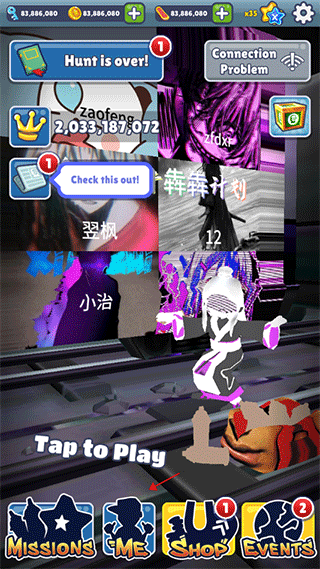 地铁跑酷牛犇犇版本是个挺有意思的魔改版游戏,整体画面变成了紫色,金币变成了人物头像,背景音乐也很有节奏感,感觉和原版不太一样但还挺有趣的。玩法基本上跟原版差不多,就是操控角色在彩虹地图上躲避警察的追捕,路上会遇到各种障碍物,得灵活操作才能避开,还能用翻滚来提高分数。游戏里还有不少道具,比如磁铁可以自动吸金币和宝石,加速器能让速度瞬间变快,这些都挺实用的。