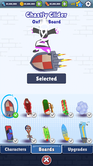 这个版本还新增了滑板系统,可以选择不同的技能,像滑翔或者二段跳,感觉挺酷的。切换滑板的方法也挺简单的,进主菜单选角色就能调。游戏的画面更细腻了,场景看起来更有真实感,而且还能在全球排行榜里和别人比成绩,社交功能也增加了不少乐趣。