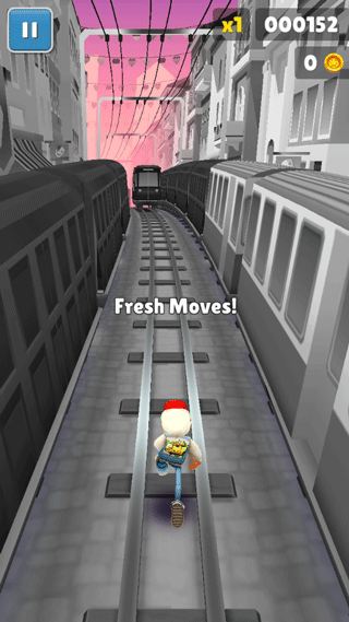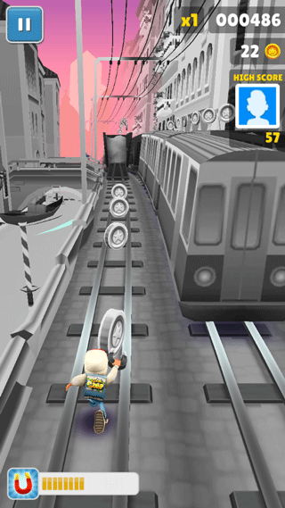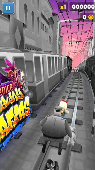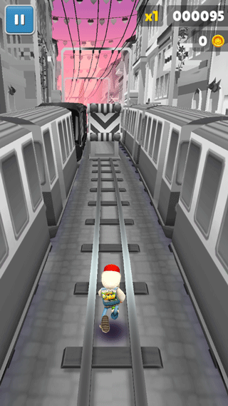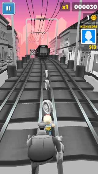 2、在轨道上跑酷,注意躲避保安的抓捕