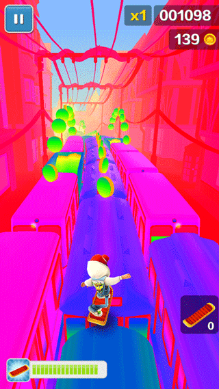 一开始被地铁跑酷彩虹世界版本这独特的风格震撼到了,整个地图都是彩虹的颜色,刚进入游戏会觉得有些刺眼,玩了一段时间后会发现非常美观。在现代社会中,我们都面临着各种压力和困扰,有时候需要找一个途径来释放一下情绪。地铁跑酷彩虹世界版本就是一个很好的选择,你可以在游戏中尽情奔跑,享受速度和自由,忘掉烦恼和忧虑,给自己一个轻松的时刻。总之,地铁跑酷具备良好的娱乐性和挑战性,可以让玩家在消磨时间的同时放松心情,并可以通过不断挑战自我提高操作技巧。