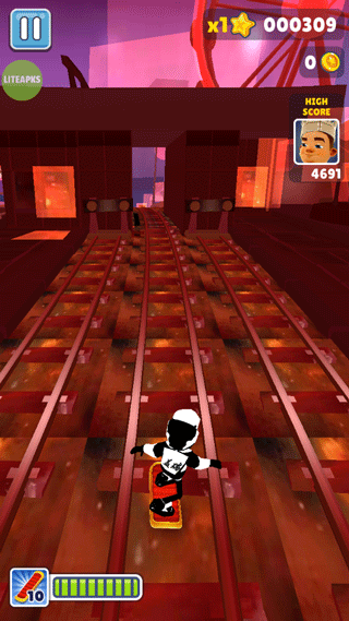 有地铁也会有山洞,中间有一根柱子,左右两边无规律会有火车奔过来,这个时候就要考验玩家的应变能力。