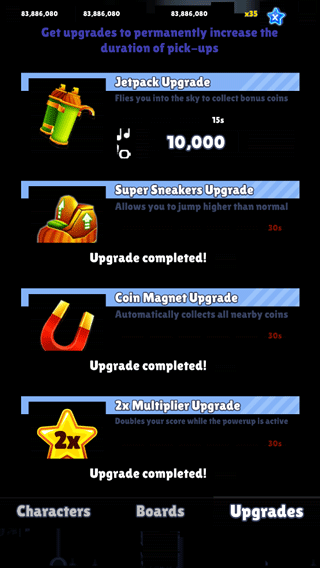 3、拾取游戏内的双倍得分道具可以为你增加一段时间的双倍得分,可以通过升级道具延长持续时间。