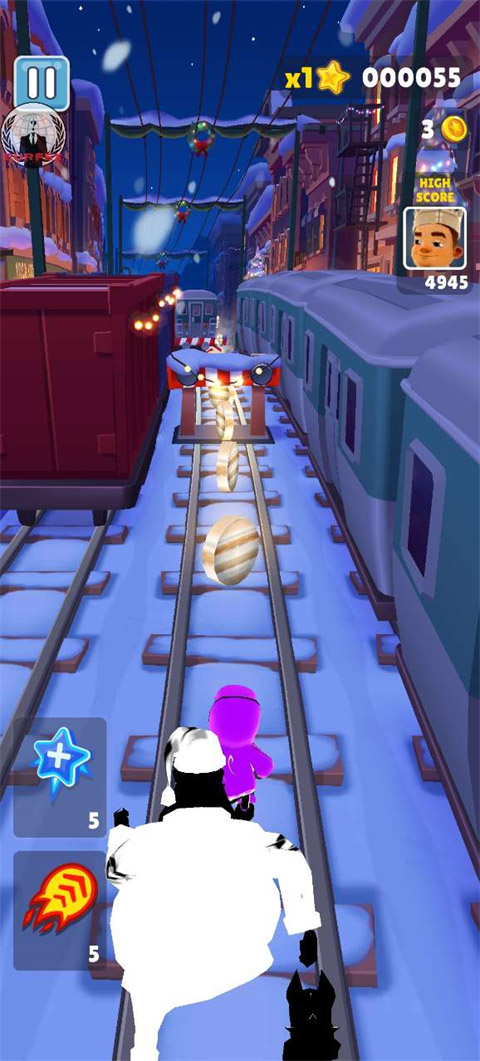 地铁跑酷游戏玩法都是和原版一样,玩家需要通过左右滑动屏幕来控制游戏角色的移动方向,并在地铁隧道中奔跑、跳跃、滑行、闪避障碍物以及收集金币来获得高分。