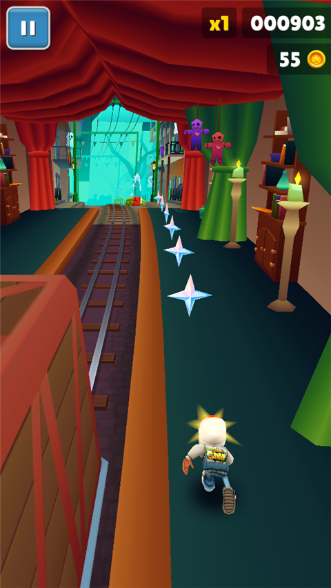 在玩法上还是和原版地铁跑酷游戏十分的相似,都是拥有简单易上手的操作方式深受玩家喜爱,在这里玩家只需通过触摸屏幕左右滑动、向上或向下滑动等简单的手势就能控制角色的行动,使得游戏容易上手,无论是老少皆宜,当然在游戏中玩家也是需要反应速度和手眼协调能力,因为你需要根据道路的变化、障碍物的出现以及道具的位置等因素进行及时反应和操作,这要求玩家具备较高的反应能力和手眼协调能力,增加了游戏的挑战性和乐趣。