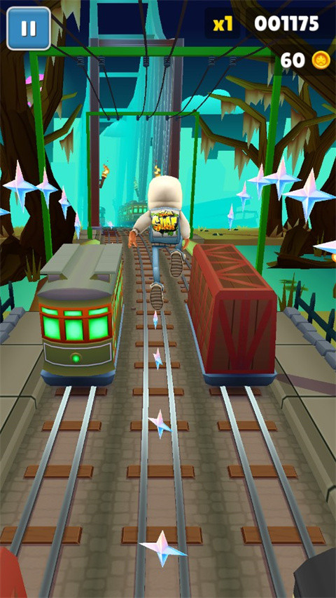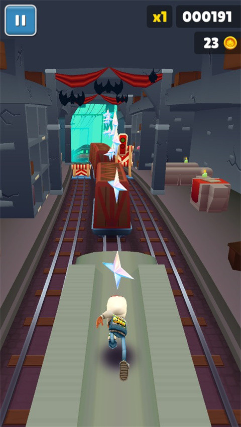 有地铁也会有山洞,中间有一根柱子,左右两边无规律会有火车奔过来,这个时候就要考验玩家的应变能力。
