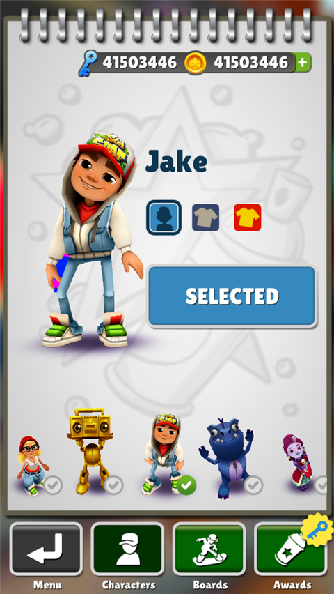 4、这款游戏还有一大特色非常吸引人那就是装备系统,玩家可以通过积攒金币和钥匙来解锁角色,不同的角色代表不同的国家地区,同时可解锁角色的不同装扮。还可以解锁各类滑板,升级滑板技能,并且可配备宝物和背饰。如果玩家想要拥有更丰富的角色滑板,那么搜集金币和钥匙就成了首要任务。