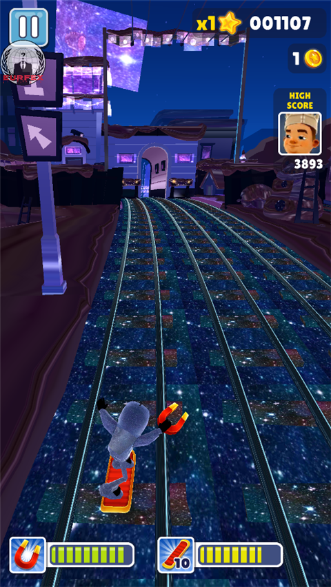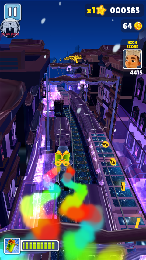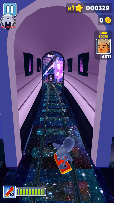 4、随机应变沉着应对,学会默数滑板的消失时间,以及优化跑酷路线(何时放开的捡道具、游戏币,何时选择安全路线为主)不要顾此失彼。