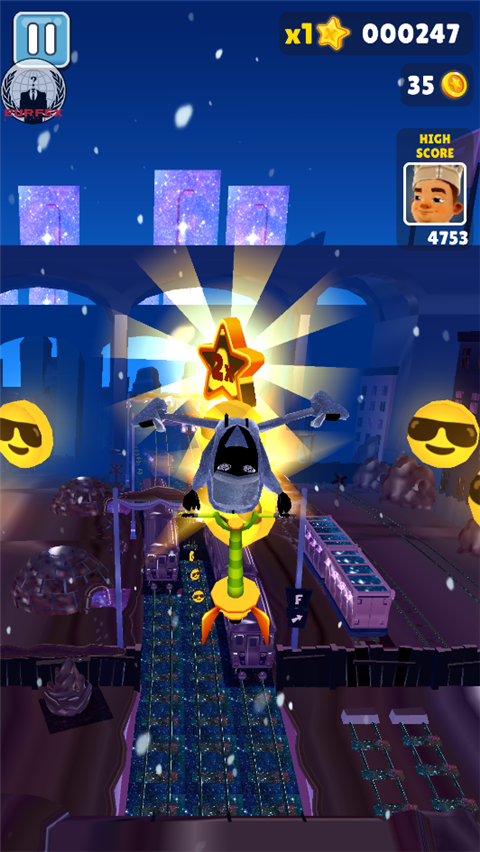 这款地铁跑酷小呆呆二改版本真的很有趣,画面风格主打星空,配上飘雪和水晶灯装饰,视觉效果超级棒。游戏玩法跟普通地铁跑酷差不多,但加入了更多有意思的道具和角色技能,让整个体验更丰富了。特别是滑板、喷射器这些道具,关键时刻用起来特别爽!不过新手要注意,别一上来就滥用道具,得慢慢熟悉节奏。