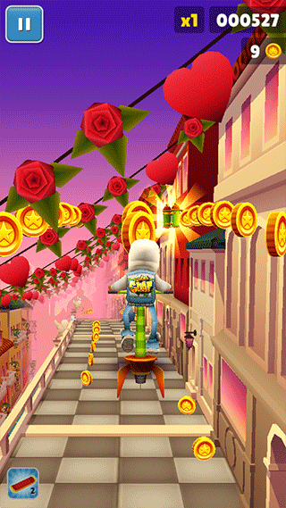 获得双倍得分(2X Multiplier)后,在道具有效时间内,每收集一个金币即可获得两倍于原先倍数的得分。