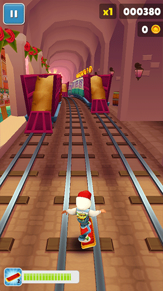 游戏和原版没有什么区别,玩家需要在地铁上进行跑酷以及躲避最不,在奔跑的过程中,玩家可以沿途拾取钥匙、道具等物品,来帮助自己跑得更远,同时需要躲避前方列车和其他物体的障碍,还可以跳上列车顶部,使用滑板来躲避抓捕。