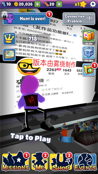 地铁跑酷雾绕定制专属版是由zfdtig雾绕根据地铁跑酷魔改的一个版本,对游戏内的人物进行了修改,画面也进行了些许的调整,更富有梦幻和神秘的感觉,并且金币也修改成了钥匙,让你有种在玩新游戏的感觉。