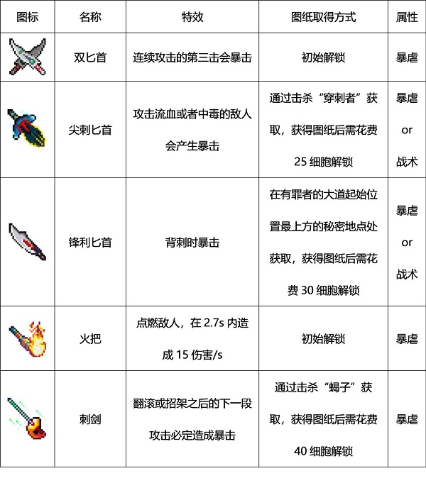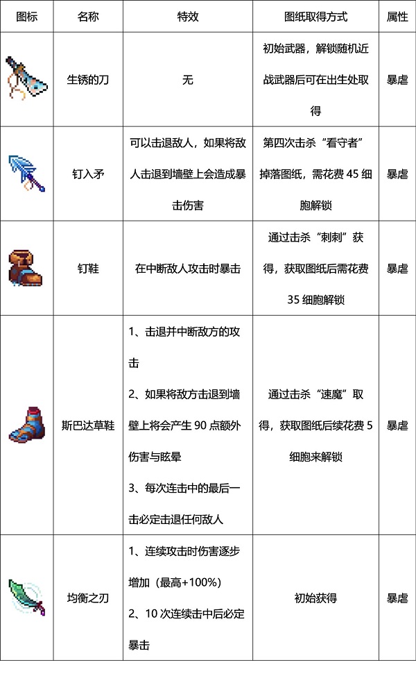 死亡细胞手机版武器图鉴大全