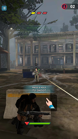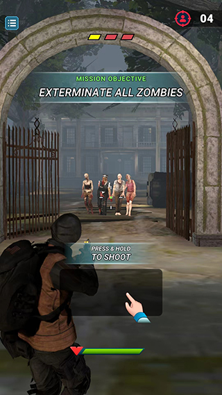 3、通过滑动屏幕瞄准目标就会进行射击,红条代表丧尸的血条,