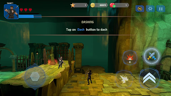 5、右下角分别为攻击、技能、冲刺和跳跃按钮,