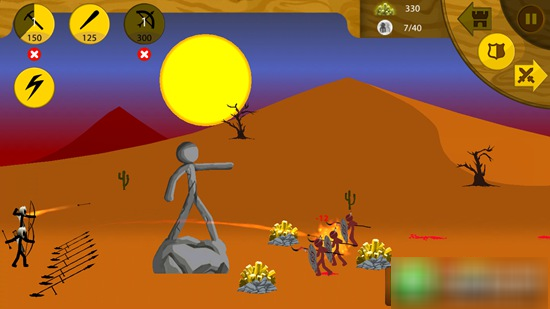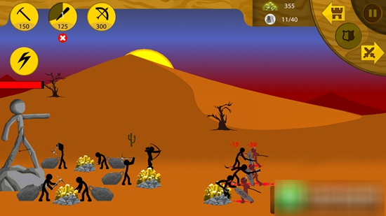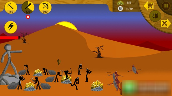 有足够的矿石,就能点击攻击类的火柴人,派遣它们去摧毁敌人的基地。
