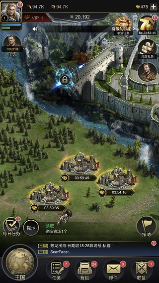 3、每日任务:每天必做的任务,城堡等级越高,奖励越多;
