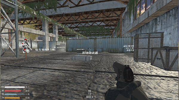 2、添加了背包系统,15种枪械,食物系统,可以建造帐篷和篝火过夜!