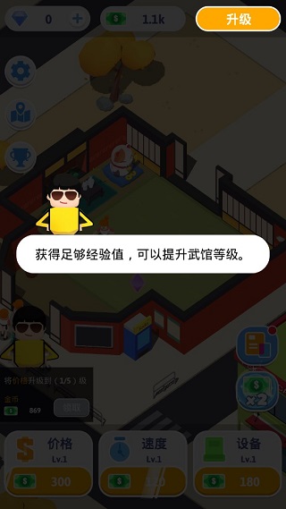 空闲功夫(Idle KungFu)是一款武馆功夫俱乐部模拟经营游戏,游戏中玩家将接受一家低价出售的武馆,通过您的商业才能,令昔日的功夫武馆再造辉煌。该游戏是一款放置经营游戏,轻松休闲的放置经营玩法,非常适合消磨空闲时间,并且卡通式的游戏画风,完全适合所有年龄段的玩家朋友,没有时间限制,没有地域差异,只要你能利用空闲时间回来妥善经营,就能将武馆打造的有声有色。在空闲功夫游戏中,随着玩家经营管理能力的增强,武馆房间会越来越多,为此您可以扩大俱乐部和空间,而且当您获得足够的钱时,可以升级商品,减少会员的学习时间以获取更多利润甚至提高价格,升级后,解锁新成员和老师,如此丰富的经营模拟创造游戏,喜欢的朋友可千万不要错过哦。
