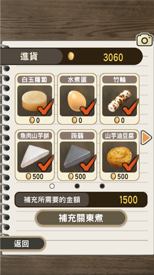 (5)手头上的资金增加了以后就可以继续进货新的食材哦!