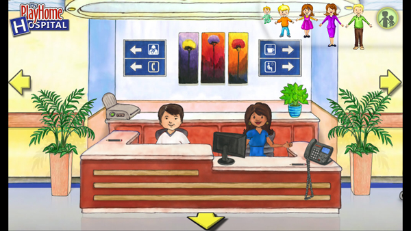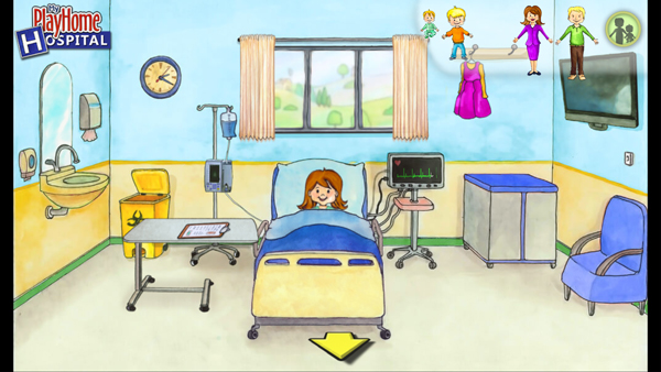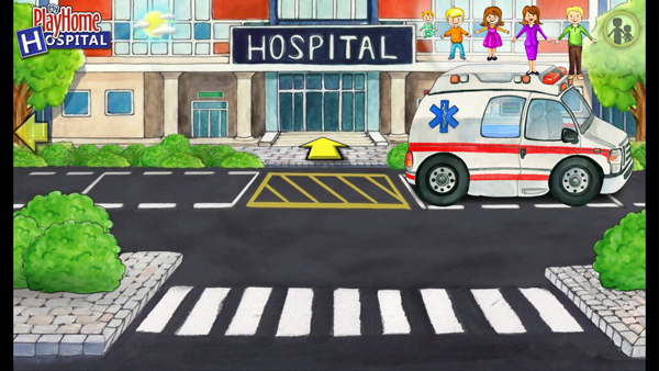 3、点击左右两边的箭头可以切换各种不同的医院游戏场景。