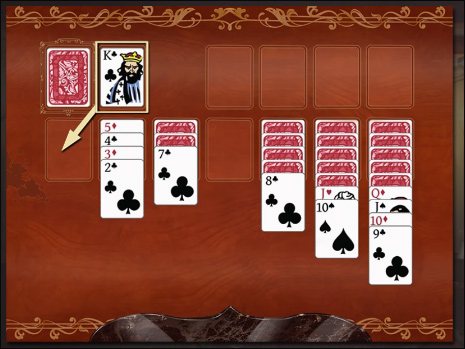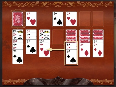 你可以将面板的任何正面朝上的纸牌移动到另一个牌堆,前提是那个牌堆的顶牌比移动的牌大并且颜色不同。