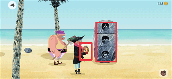 9、最后来到末尾将石头左右滑动成对应椰子的图形后,将椰子放置在上面即可完成本关前往下一关