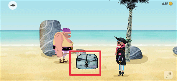 4、在第二关中,玩家首先控制角色前往红色x处,然后叫手下将宝箱挖出,挖出后的宝箱需要钥匙才能开启