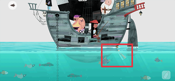 2、完成钓鱼任务后会出现一个漂流瓶,用鱼竿将它钓起来