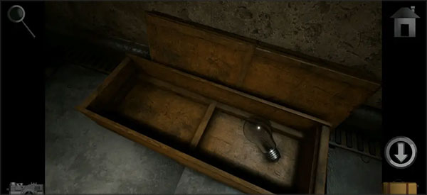 6、退出控制室往里走来到机械室门口,点击右边箱子上的台灯,装上灯泡后观察灯罩上的提示。接着到宿舍门口,用镊子拿到铁笼里的「拉绳」。
