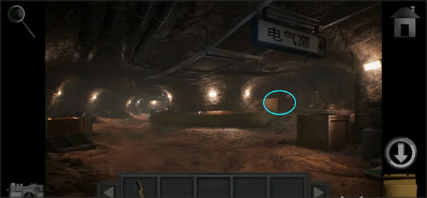 3、从控制室里出来,到路口往左走,在电气室那里拿走石板上的「钳子」。接着用刷子清理左边箱子上的泥土,然后观察上面的提示(需要将其倒过来看)。最后再往里走,在宿舍外面过道右边的箱子上获得「延长线」。