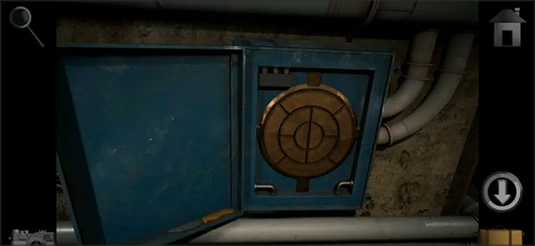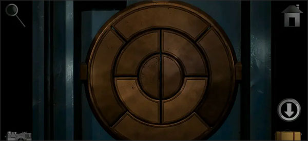 16、进入地下室,点击拐角走廊墙壁上的机械面板,根据上面的顺序打开盖子获得「锤子」。接着回到客厅,用锤子砸开玻璃柜拿到里面的「台球」,最后到游戏厅根据墙上的提示摆放台球。