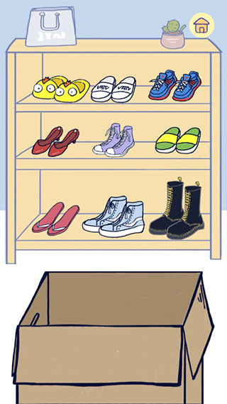 6、这里是女主收拾房间,把物品一个个拖到箱子内就可以了;