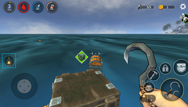 3、在此游戏中收集海洋必需的所有物体:收集工具,处理材料,食物,包括有用的资源,而木板是漂浮的良好来源。