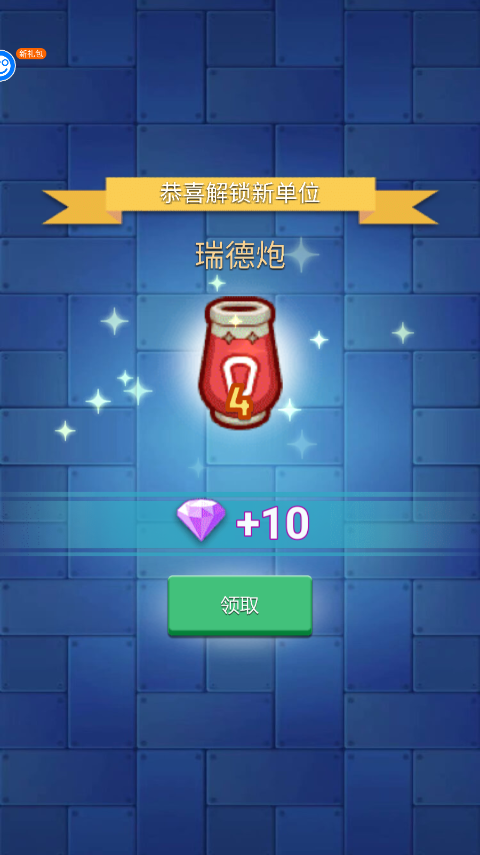 2、解锁新单位,领取奖励,如夜楼炮另外加10颗砖石。