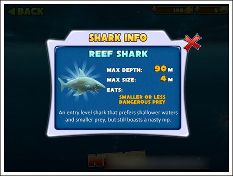 3、丰富的升级内容,可以通过升级强化提升鲨鱼的狩猎能力和生存能力;