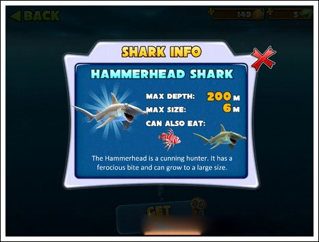1、卡通风格的游戏画风,带你感受海洋世界中的吞噬乐趣;2、丰富的鲨鱼类型可以解锁,选择你喜欢的霸气鲨鱼开始猎杀吧;