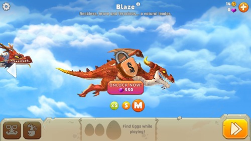 1、游戏玩法是让龙各种吃喝,赚取金币和经验,不断的解锁大龙。2、玩家初始只有一条小龙,通过在天空中猎食成长。这个游戏的宠物是要自己找蛋来解锁的,而龙是生长度满后解锁下一条的金币购买。