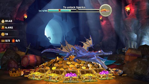 4、在龙窟内对飞龙进行升级后来到这个魔幻的世界中,S级的龙连捕食小鸟难度都比较大,但在经过升级速度、加速之后,就能快速捕食,延长游戏时间。