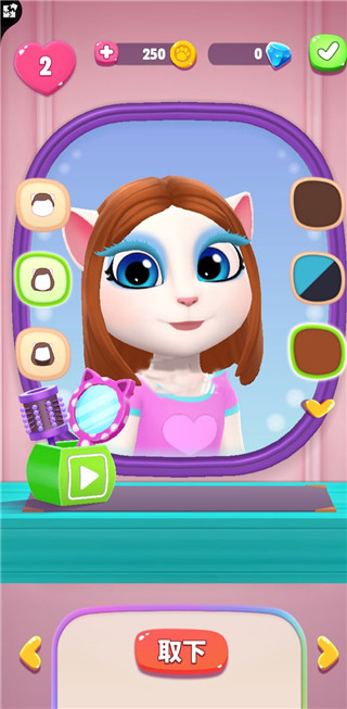 安吉拉也是需要美美的!除了日常的梳毛外,我们可以在化妆间里面,帮助安吉拉涂口红、涂眼影、画眉毛,每个化妆品都有不同的颜色和样式,我们可以打造安吉拉的独特风格。只有你想不到,没有游戏做不到。我们在游戏中可以帮助安吉拉换肤色,换发型,或者换日常的服装,衣服的款式非常多,总有一款你喜欢。